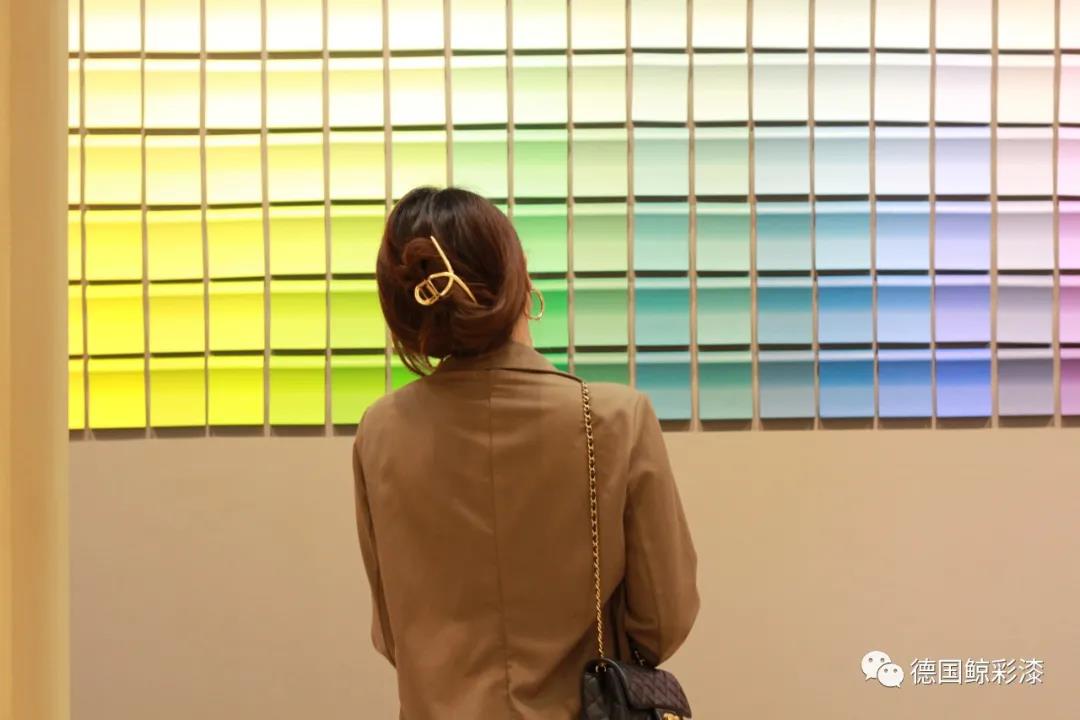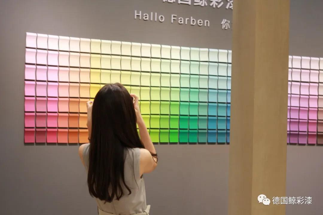 在德国鲸彩漆色彩墙,极富时尚创意的拍摄场景吸引了许多观展者驻足。大家纷纷在此打卡留念,分享自己的“你好色彩”。