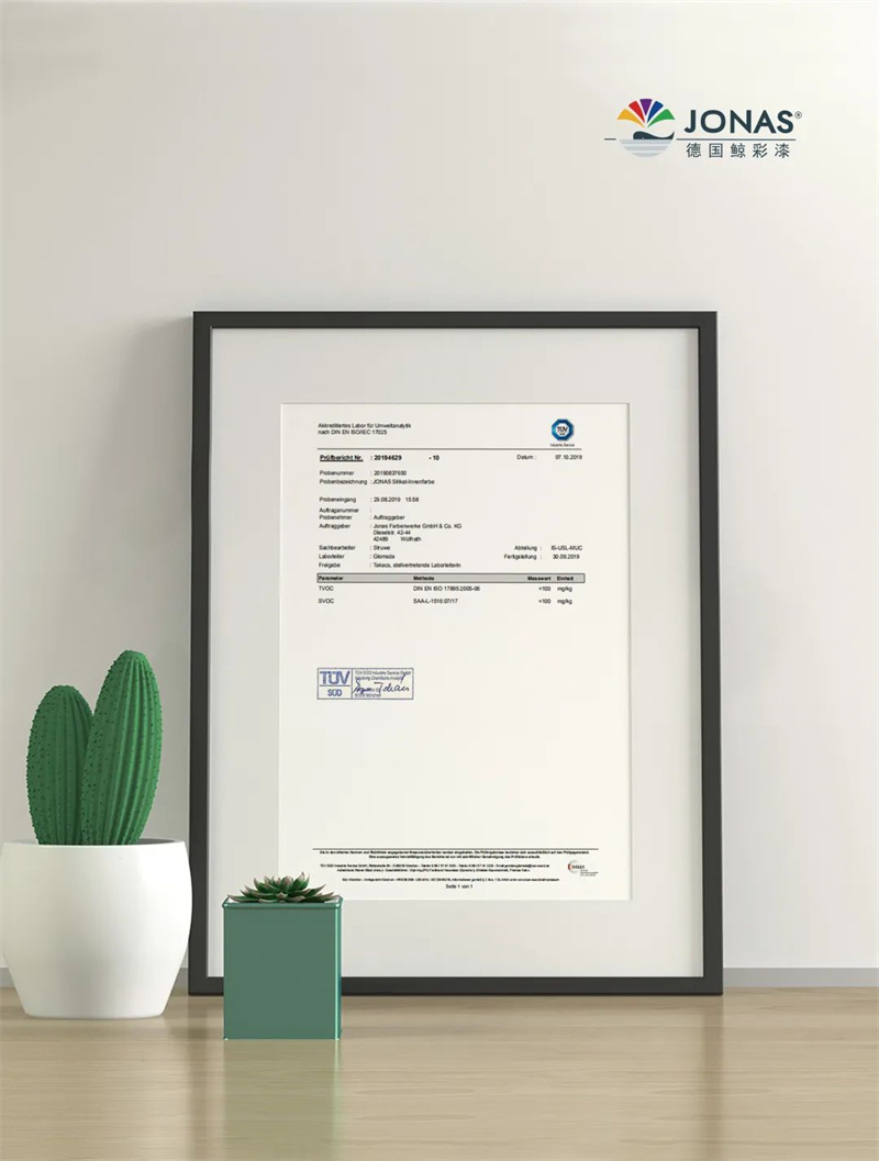 通过蓝天使认证、TüV Süd认证标识,不含防腐剂,零溶剂且零有害排放物,即刷即住 。