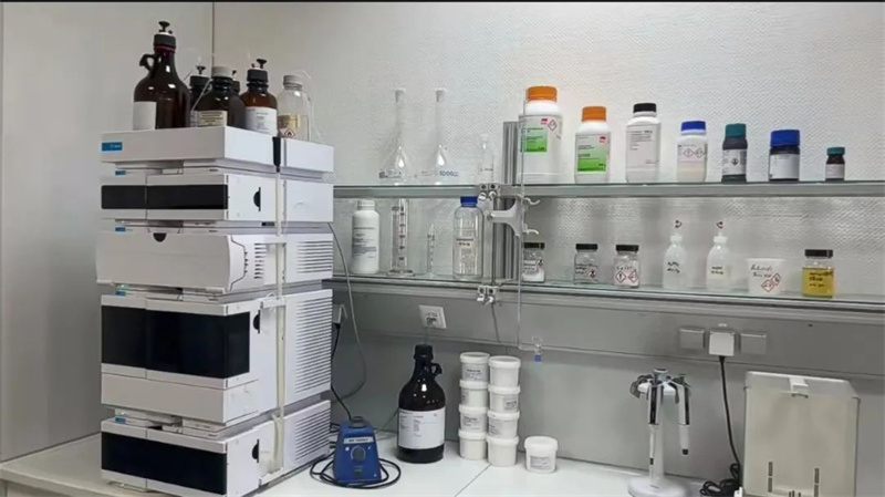 接下来则是办公区域最核心的实验室,实验室研发专业设备与高严格原材料检测系统,陈列着智能调色机器、观测原材料中的微小颗粒的显微镜等,检测原材料,对成品进行严格质量检测,研发新品。
